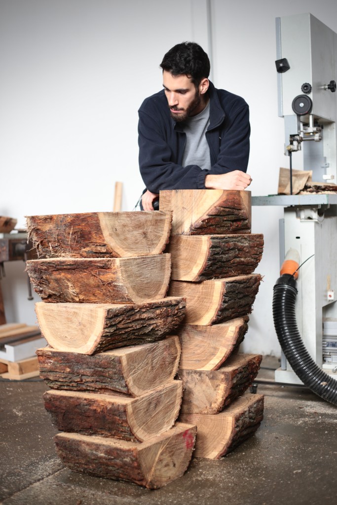 Each piece in the workshop is meticulously crafted with passion using exclusively reclaimed wood from responsible sources. Raw materials are transformed into contemporary and sustainable artifacts, blending artistry with dedication